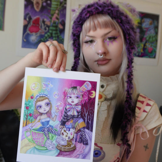 The Butturbum x Appleberriepie.online collaborative print! Proceeds from this print will be split to support both of our small business's 💜 Available in sizes 5 x 7", 8 x 10", and 11 x 14", on thick 300gsm glossy paper. High quality and colour matched to the original artwork, including a hand written Artist statement printed on the back of each print, as well as individually hand signed with love. Discover what the backing describes upon my beloved prints arrival.