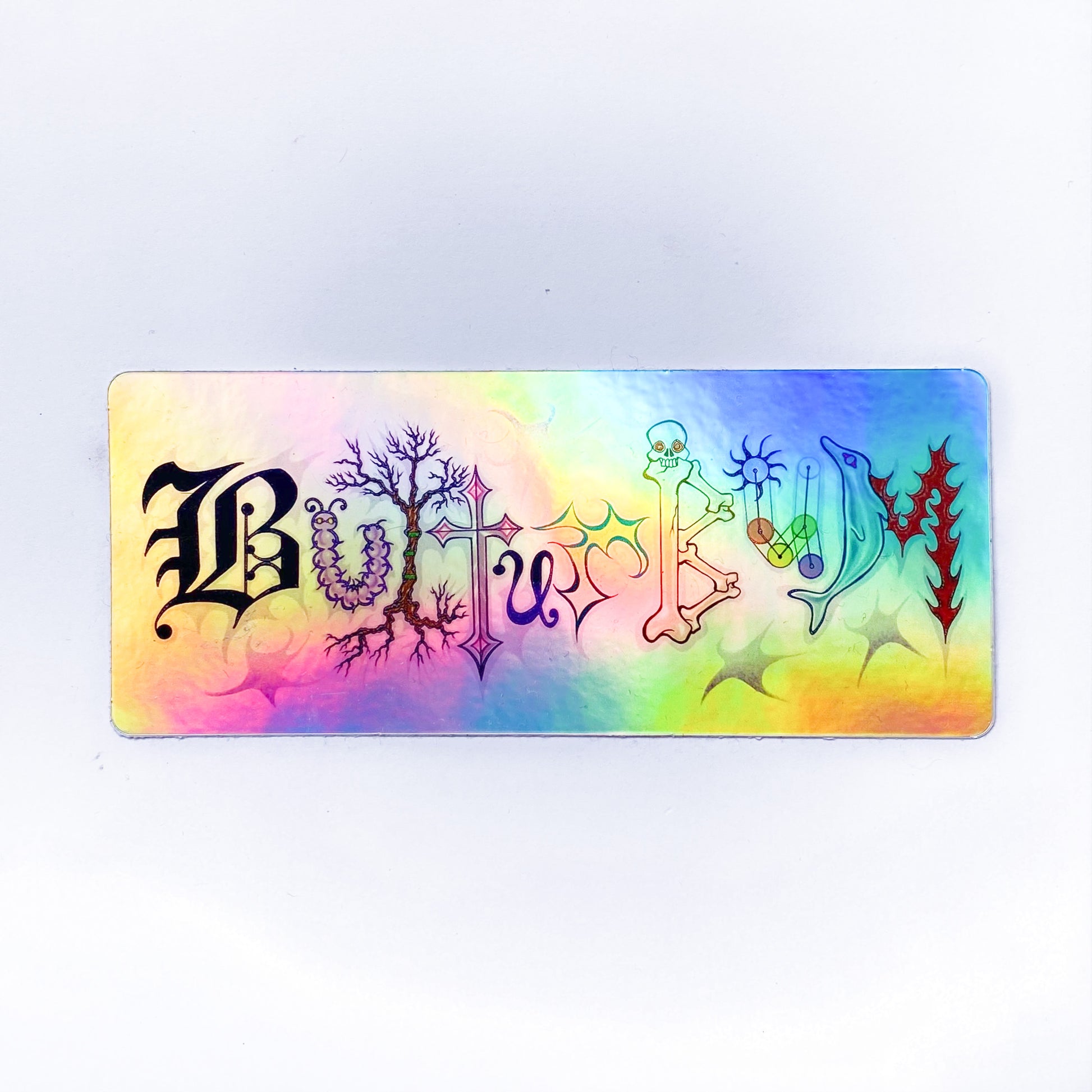 Premium Holographic Vinyl Sticker with a shifting Rainbow effect. Water-resistant and weather resistant. Imagine this on your waterbottle……. Within 12.5cmx5cm.