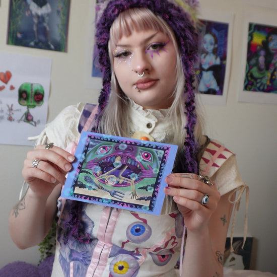 My limited edition specialty prints are here, and not forever. Only available in size 5 x 7" on thick 350gsm glossy paper. High quality and colour matched to the original artwork, including a hand written Artist statement printed on the back of each print, as well as individually hand signed with love on the front. These are designed to be a collectible special edition item, after they sell out I will not be printing them again! These cards come in metallic and holographic finishings, I hope you enjoy them as much as I do.