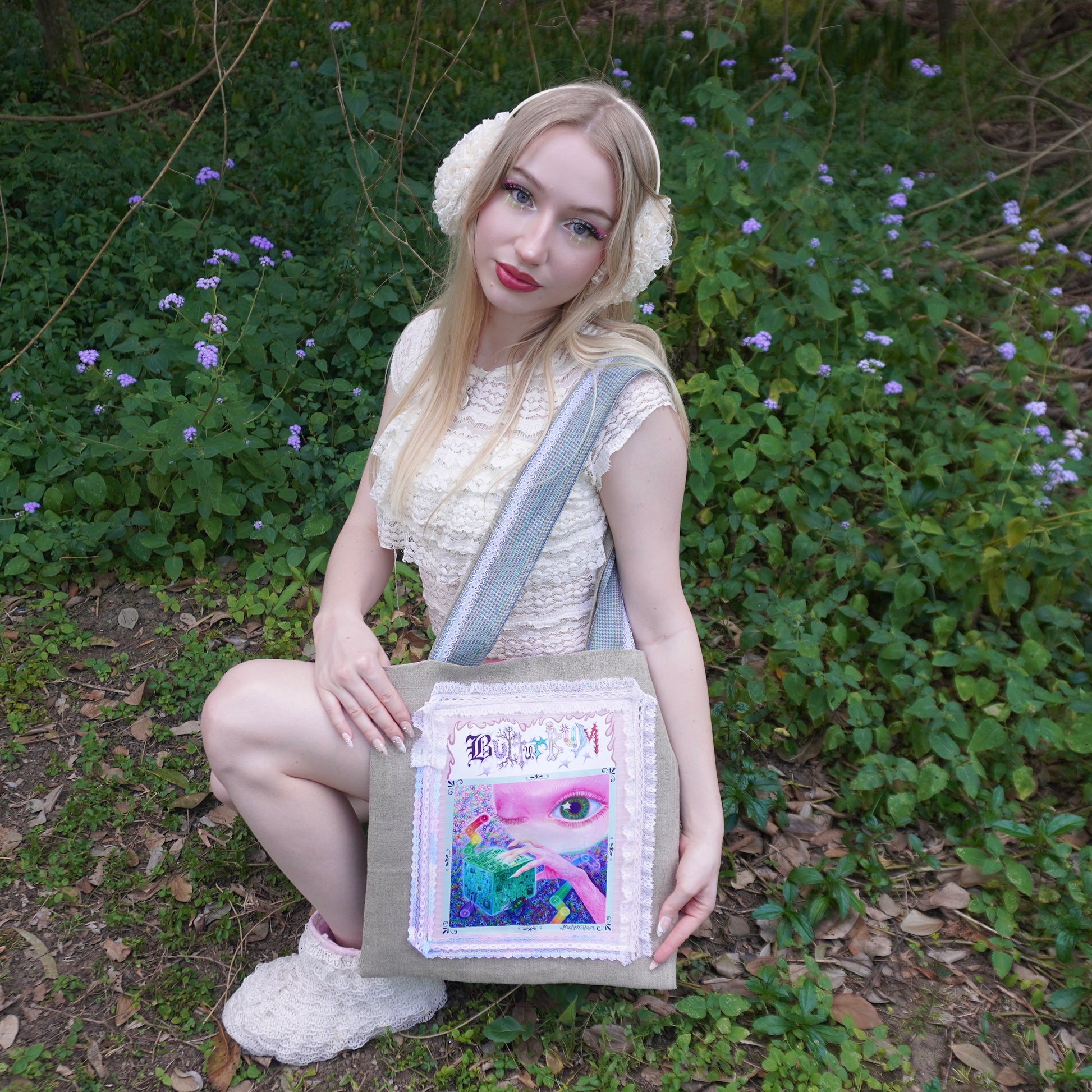 Introducing………..The new never been done before Butturbum handmade Tote bag. Each bag is unique, 1 of 1, and STRICTLY made out of only secondhand and salvaged fabric and materials, including the lace, doilies and thread used to sew it together. Each bag is fully lined as well for high quality feel and usage, because I care about that. Each bag is handmade solely by myself, the artist behind Butturbum, Emma, so this is one of my most personal products I have to offer yet besides my original Artworks. Each Bag will come with a free item, and a Tag with care and washing instructions. I hope if you purchase one of these you love it as much as I do, be sure to send me photos!