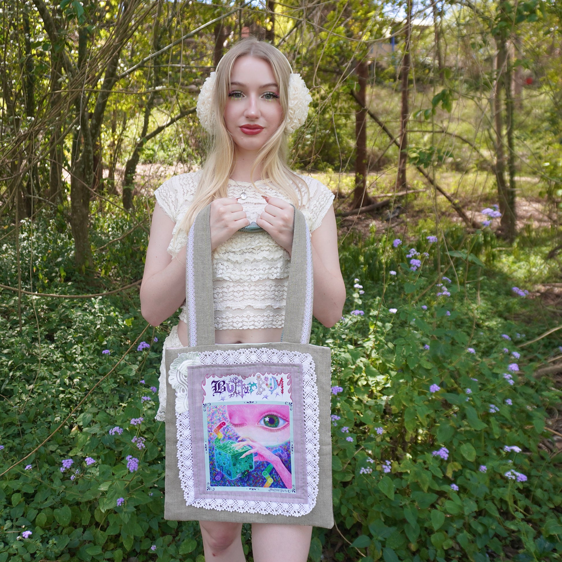 Introducing………..The new never been done before Butturbum handmade Tote bag. Each bag is unique, 1 of 1, and STRICTLY made out of only secondhand and salvaged fabric and materials, including the lace, doilies and thread used to sew it together. Each bag is fully lined as well for high quality feel and usage, because I care about that. Each bag is handmade solely by myself, the artist behind Butturbum, Emma, so this is one of my most personal products I have to offer yet besides my original Artworks. Each Bag will come with a free item, and a Tag with care and washing instructions. I hope if you purchase one of these you love it as much as I do, be sure to send me photos!