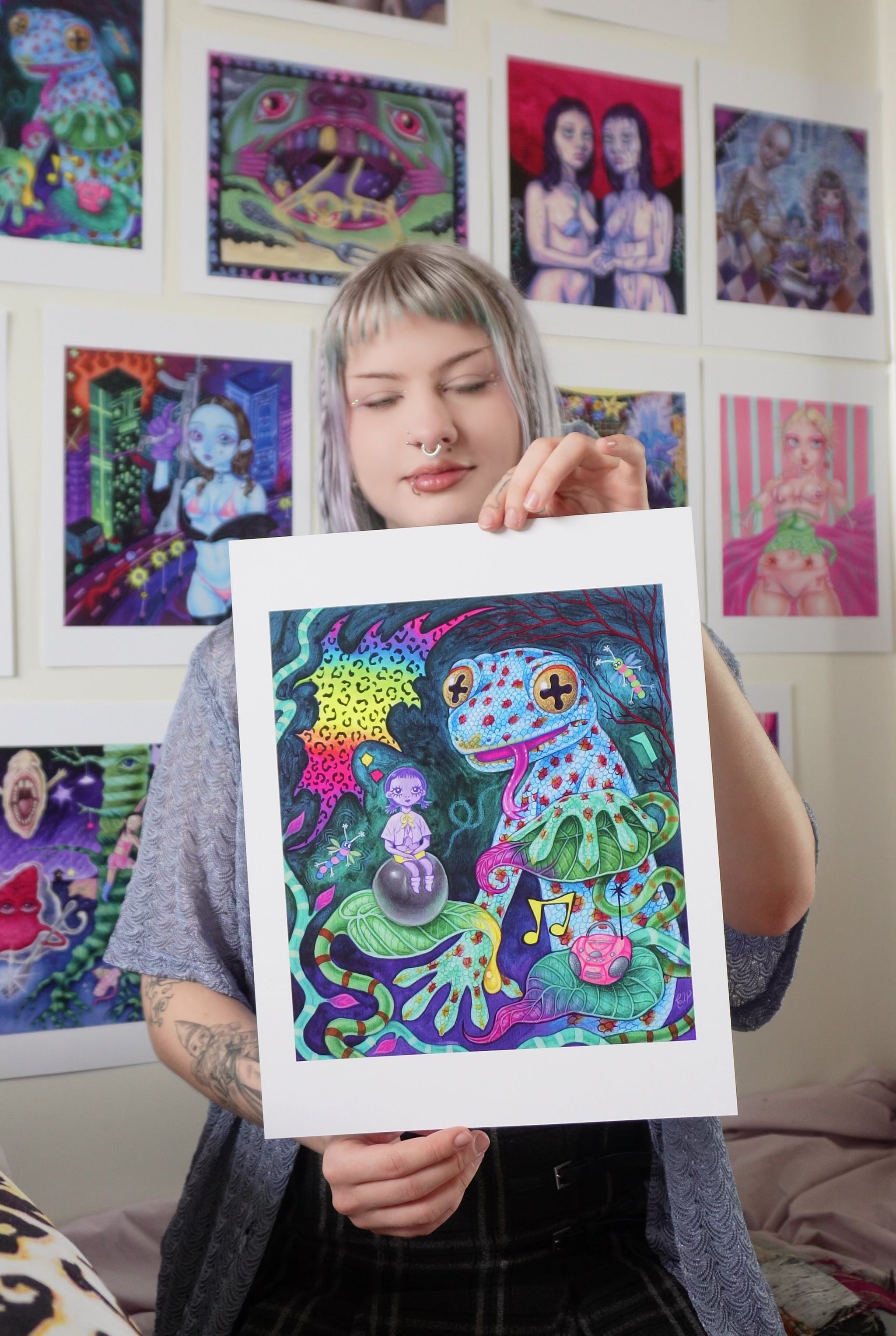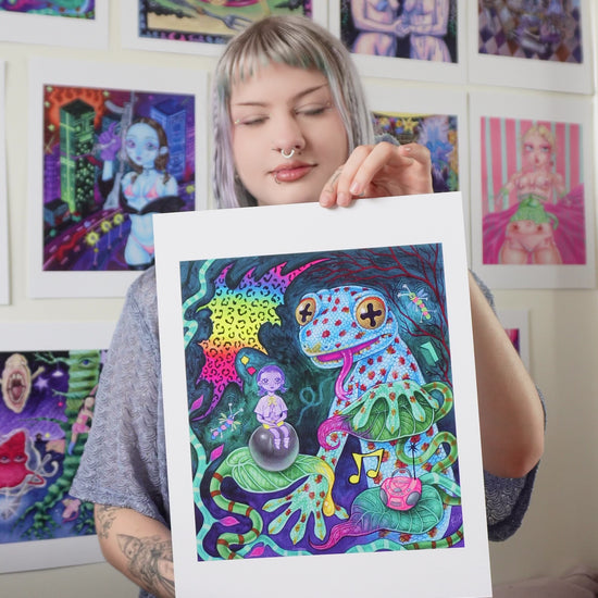 Available in sizes 5 x 7", 8 x 10", and 11 x 14", on thick 300gsm glossy paper. High quality and colour matched to the original artwork, including a hand written Artist statement printed on the back of each print, as well as individually hand signed with love. Discover what the backing describes upon my beloved prints arrival. Listen to “Le Rock” by S3RL.