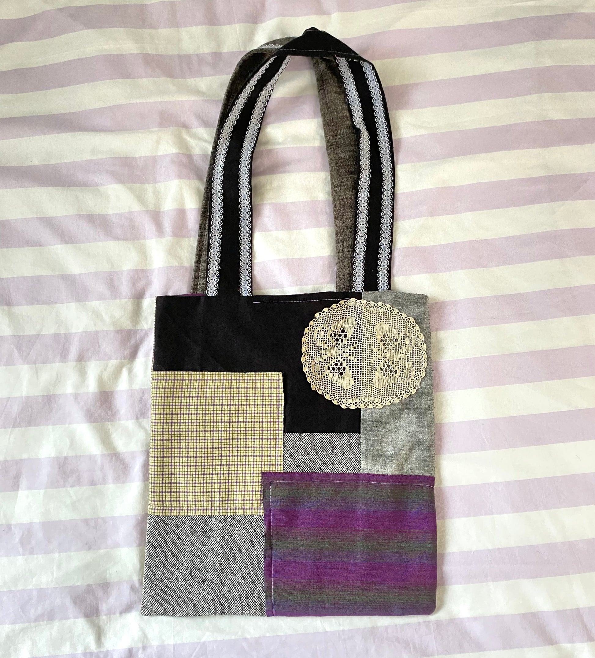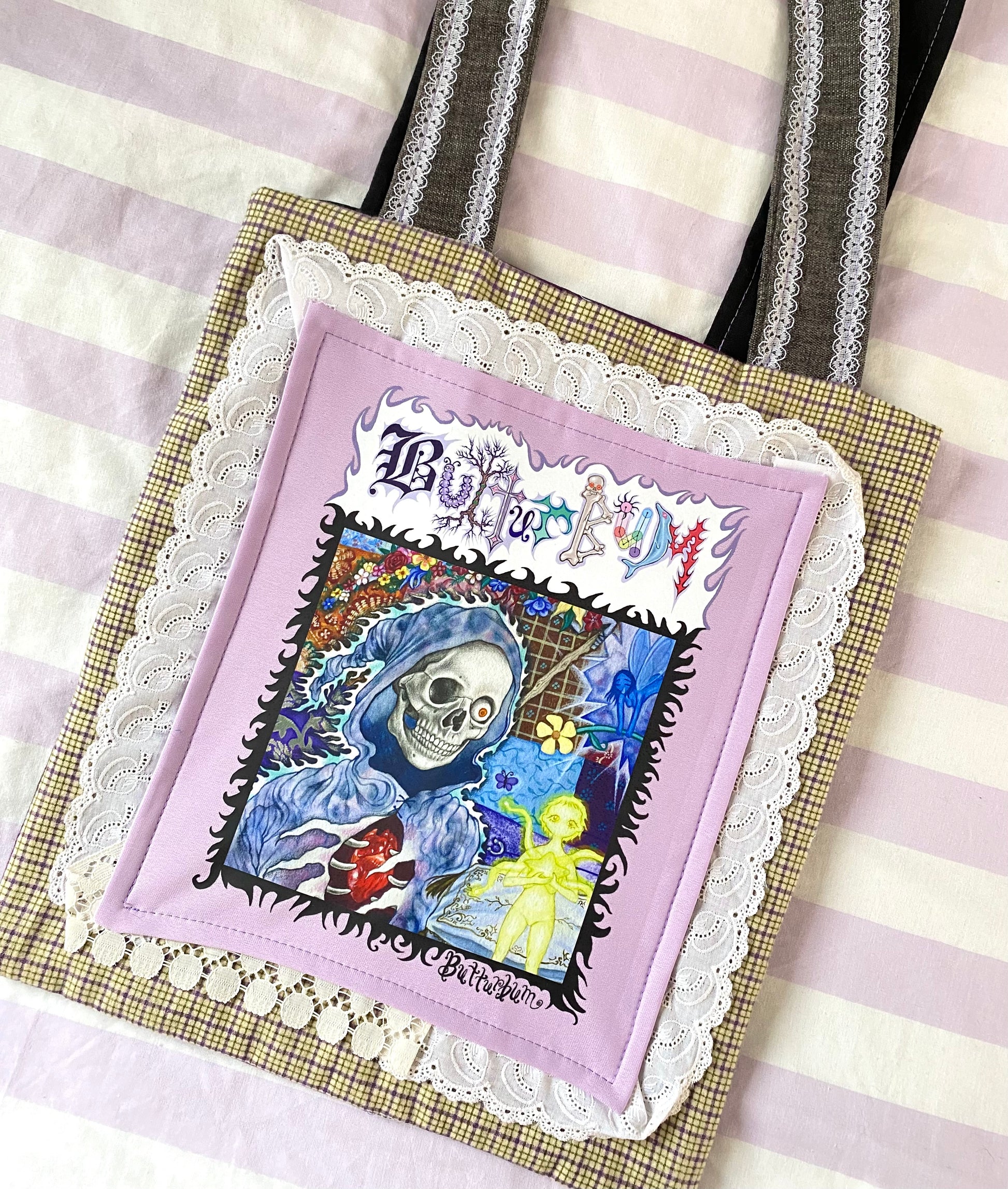 Introducing………..The new never been done before Butturbum handmade Tote bag. Each bag is unique, 1 of 1, and STRICTLY made out of only secondhand and salvaged fabric and materials, including the lace, doilies and thread used to sew it together. Each bag is fully lined as well for high quality feel and usage, because I care about that. Each bag is handmade solely by myself, the artist behind Butturbum, Emma, so this is one of my most personal products I have to offer yet besides my original Artworks. Each Bag will come with a free item, and a Tag with care and washing instructions. I hope if you purchase one of these you love it as much as I do, be sure to send me photos!