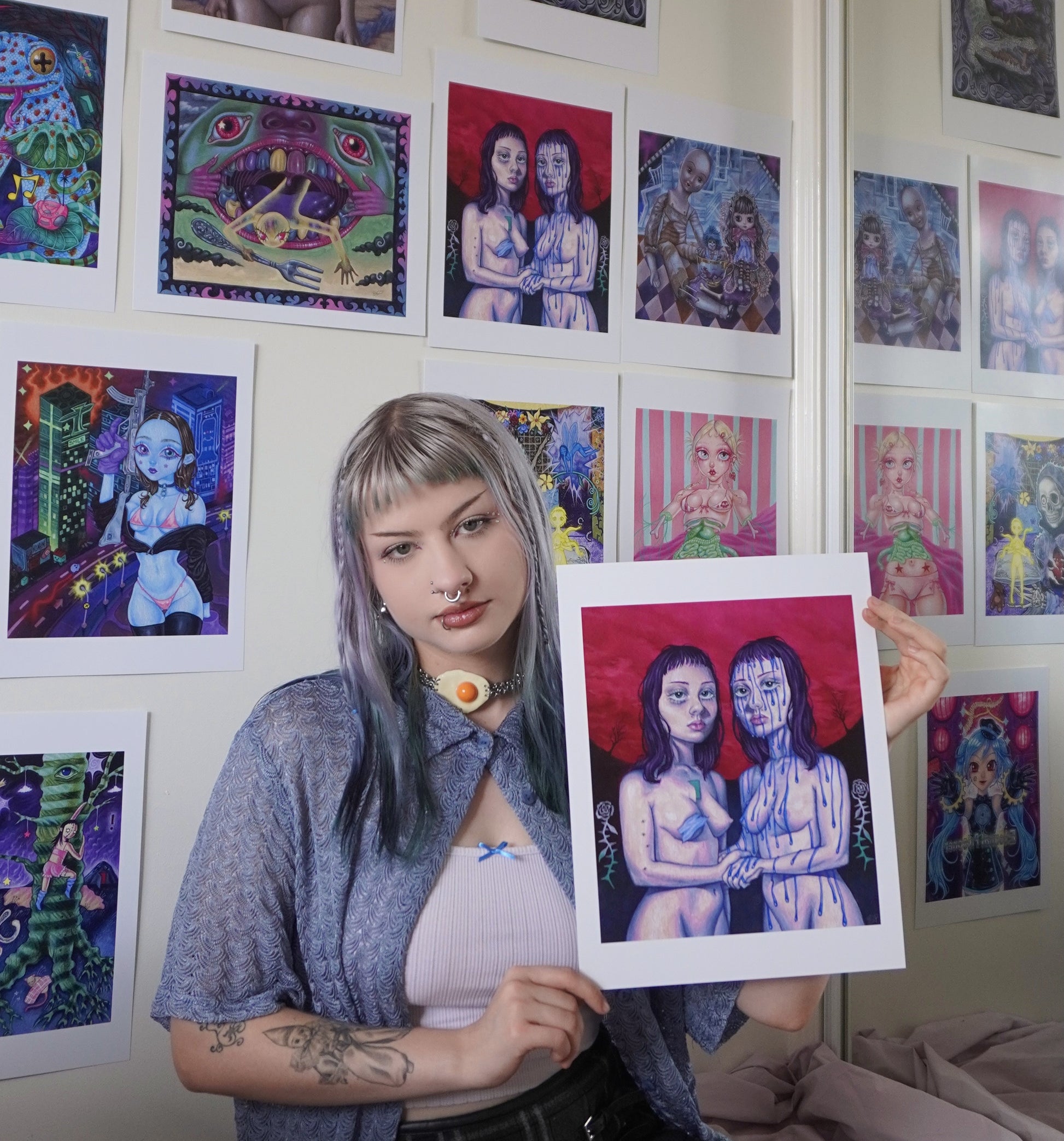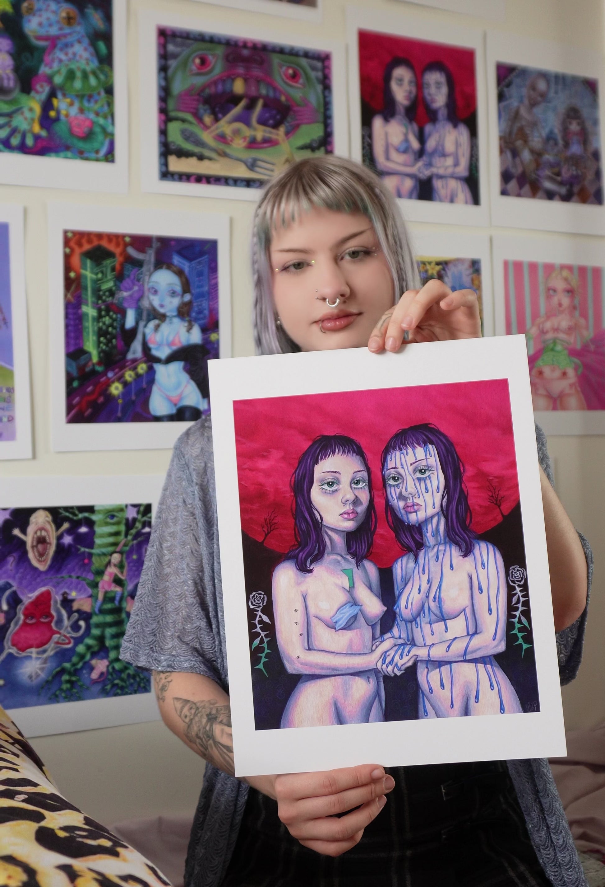 Available in sizes 5 x 7", 8 x 10", and 11 x 14", on thick 300gsm glossy paper. High quality and colour matched to the original artwork, including a hand written Artist statement printed on the back of each print, as well as individually hand signed with love. Discover what the backing describes upon my beloved prints arrival. The price of comfort is always necessary.